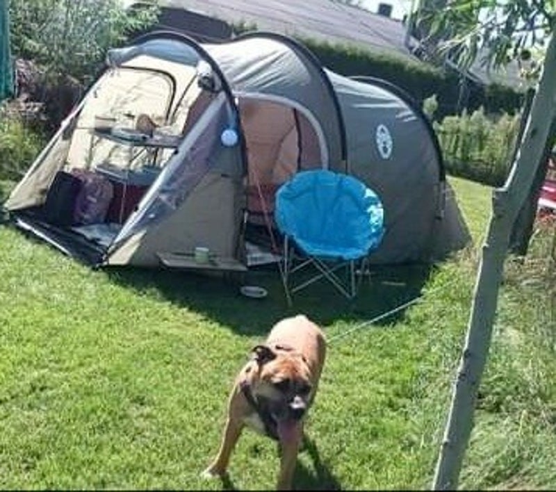 Hond of kat (mits aangelijnd) kampeert gratis.