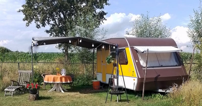 Geen zin, om met de sleurhut op pad te gaan, of wil je graag kamperen met familie of vrienden, maar hebben ze geen kampeermiddel? Huur dan onze compleet ingerichte retro-caravan voor 2 personen. (bijzettent plaatsen is mogelijk).