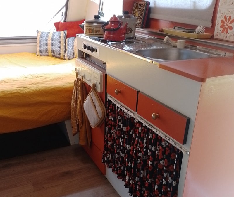 In deze supergezellig ingerichte caravan waan je je helemaal in de jaren 60-70. Hij is compleet ingericht, wat schone kleding en een fles shampoo is voldoende. Bij aankomst tref je een opgemaakt bed aan, bad en keukenlinnen is bij de prijs inbegrepen.