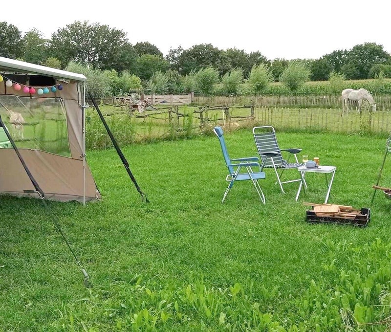 Sinds 2023 hebben wij op ons terrein een gezellige knusse mini-camping gerealiseerd, met 5 kampeerplaatsen en een tent-trekkersveldje.